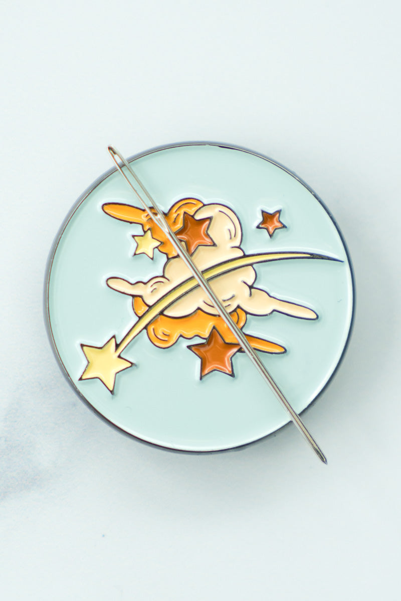 Keep your stitching on point with a little celestial magic! Our Starry Sky Needle Minder features a dreamy sky scene, complete with shooting stars, fluffy clouds, and cosmic bursts in warm earthy tones.