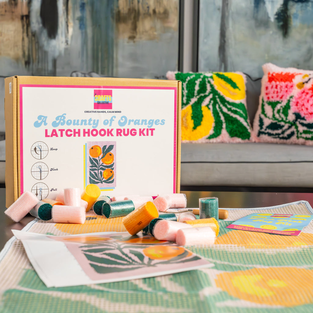 Lean into your creativity with our Bounty of Oranges Latch Hook Rug Kit.